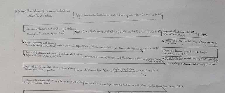 El árbol genealógico de la familia Gutiérrez del Olmo, en sus principios, fué realizado por D. Fernando Gutiérrez del Olmo y Guerra, recorriendo numerosas parroquias y registros de la zona sur de Camtabria y norte de Palencia. Posteriormente ha sido corregido y ampliado por el autor de esta página con las contribuciones de muchos de los Gutiérrez del Olmo que nos han contactado a través de parientes comunes, o a través del formulario de Contacto de esta página. Las zonas marcadas en gris son ramas de la familia que están pendientes de completar o de verificar. Si tenéis correcciones no dudéis en comentárnoslas a través del formulario de Contacto. El árbol lo podéis ver a través de este enlace: Árbol Genealógico de la familia Gutiérrez del Olmo. (Acceso protegido. Solicitar contraseña en el email de contacto)