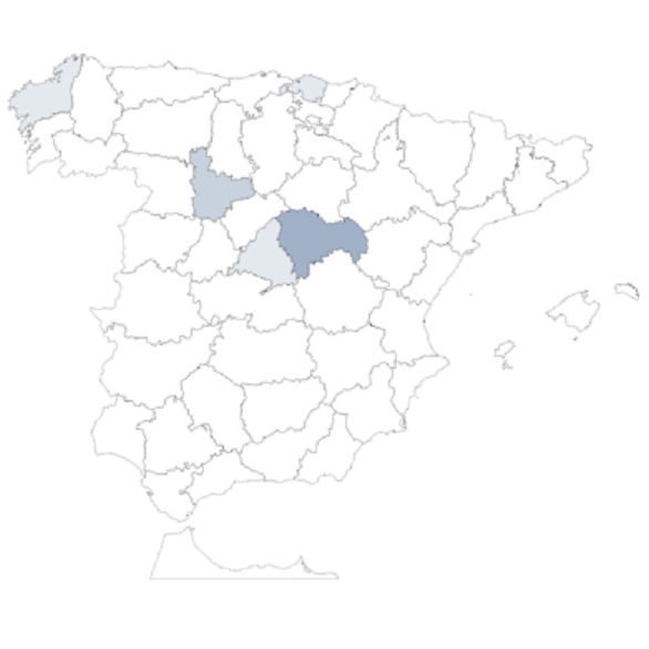 Como primer apellido, 25 nacieron en Madrid, 10 en Guadalajara y 6 en Burgos. Como segundo, 20 en Madrid, 6 en Guadalajara y 6 en Valladolid. Grupos menores en otras provincias.
